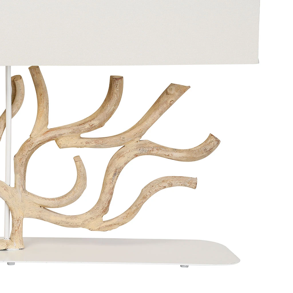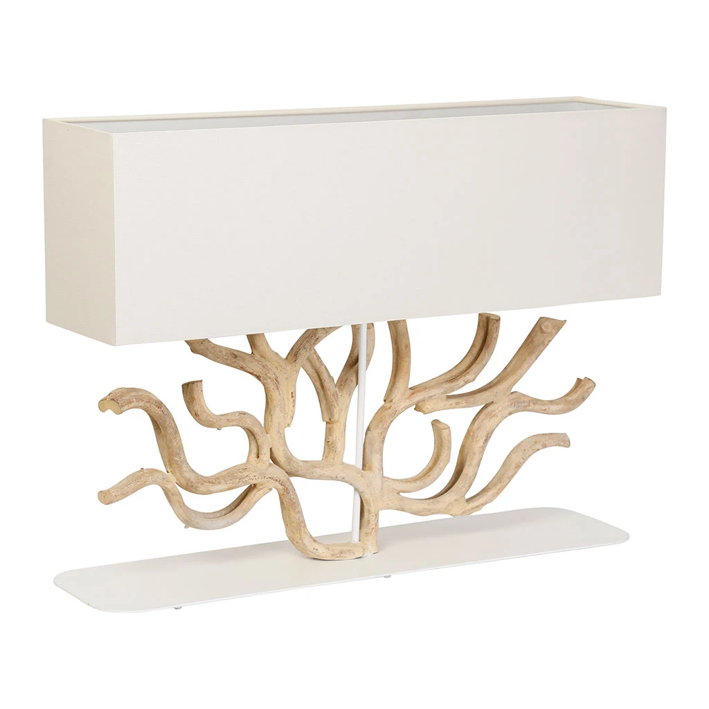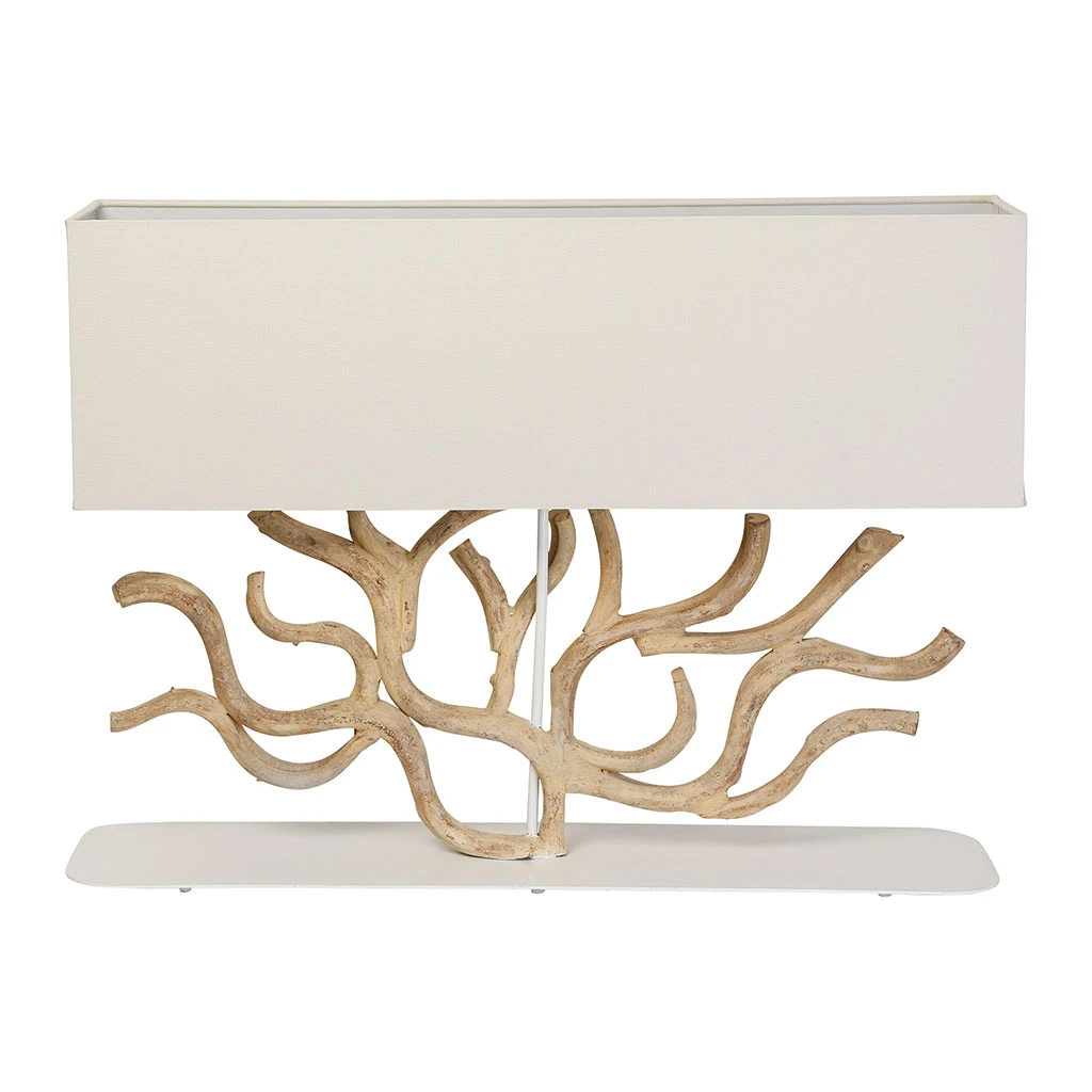 Venez découvrir notre Lampe coral naturel en bois de vigne et lin blanc 80x20xh59cm de la marque Côté Table à découvrir sur Fabrique de Styles.