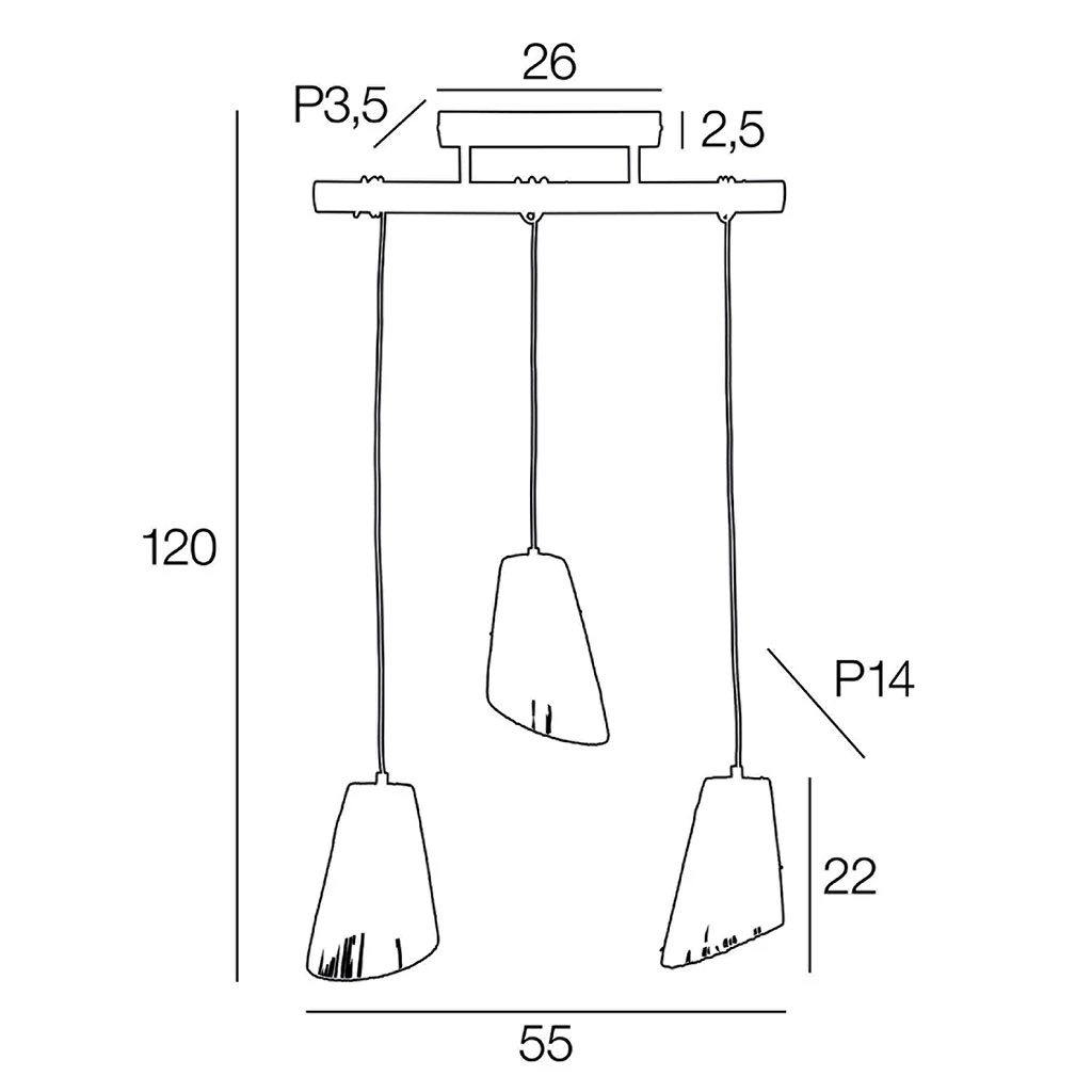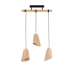 Suspension base rectangulaire 3 lumières base métal et abat-jour en raphia naturel. Hauteur réglable. Coloris : naturel. IP20. L55cm – H22m – HT120cm – P14cm. Classe 2. E27-40W.