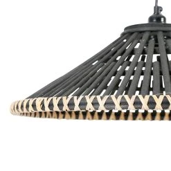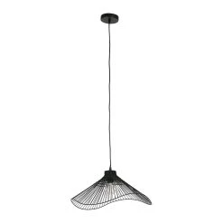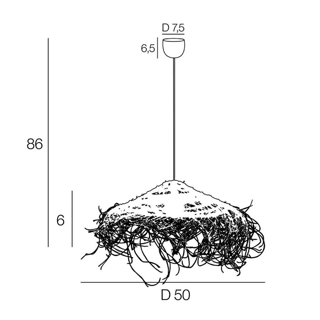 Suspension forme conique ajourée en matière Alfa fibres végétales. Coloris : naturel. IP20. D50cm – H6cm – HT86cm. Classe 2. E27-15W.