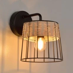 Corep Applique En Métal Et Rotin H20cm Noir – Indah