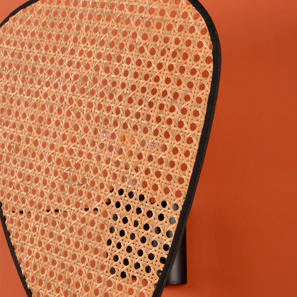 Applique base en métal peint avec abat-jour composé d’un écran en cannage.