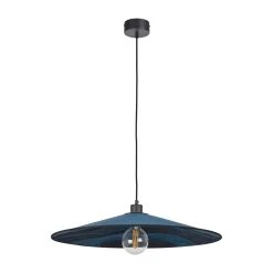 Suspension 1 lumière avec abat-jour conique bi-matière. Equipée d’un cordon textile et d’un pavillon en métal peint adaptable DCL. Ampoule E27 60W max non fournie.