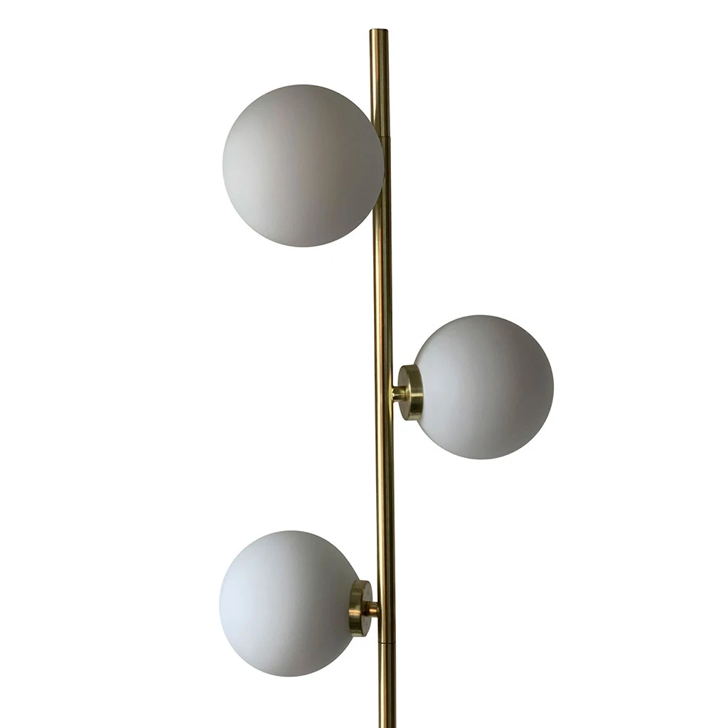 Venez découvrir notre Lampadaire edmond avec ses 3 globes en verre opaliine et en metal doré 23xh152cm de la marque Opjet à découvrir sur Fabrique de Styles