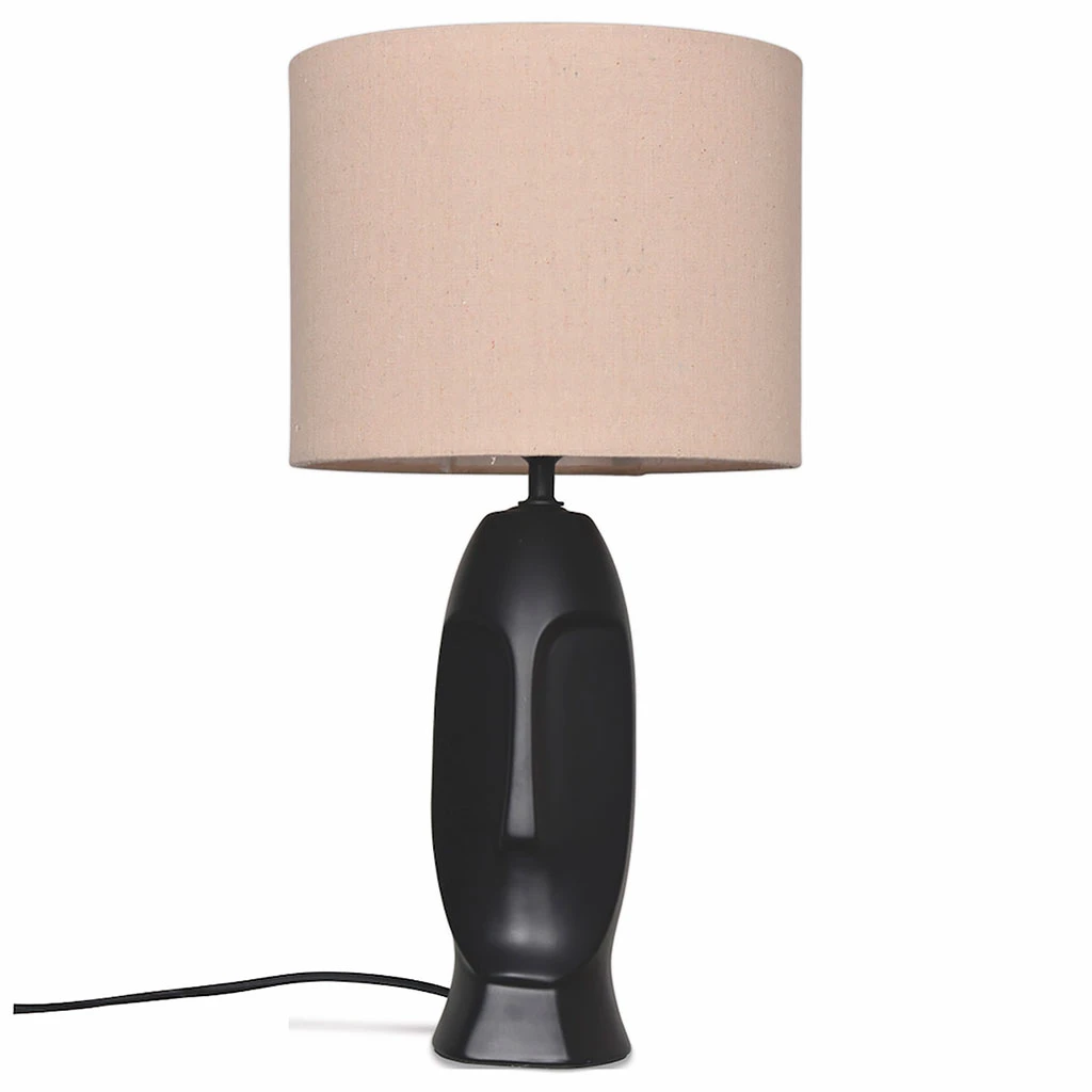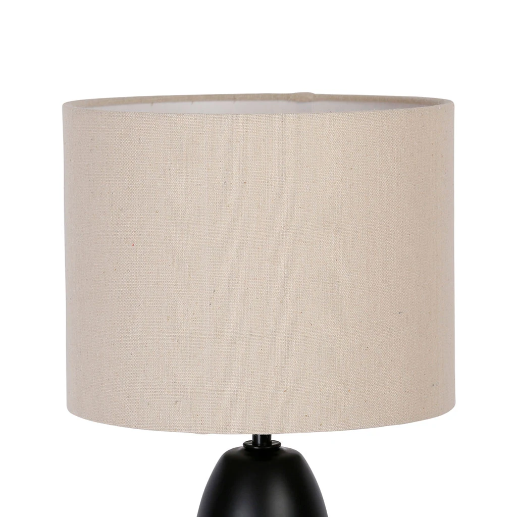 Lampe en céramique noir surmontée d’un abat-jour en lin naturel (monté sur film plastique transparent à ne pas enlever).