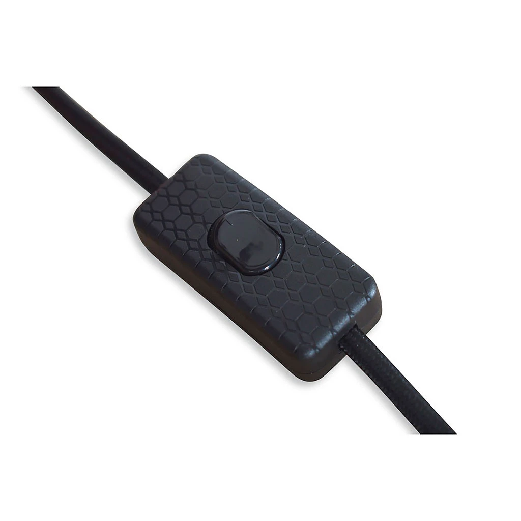 Câble en tissu noir. Douille E27, puissance 10W Max. (Vendu sans ampoule). Usage intérieur exclusivement. À monter
