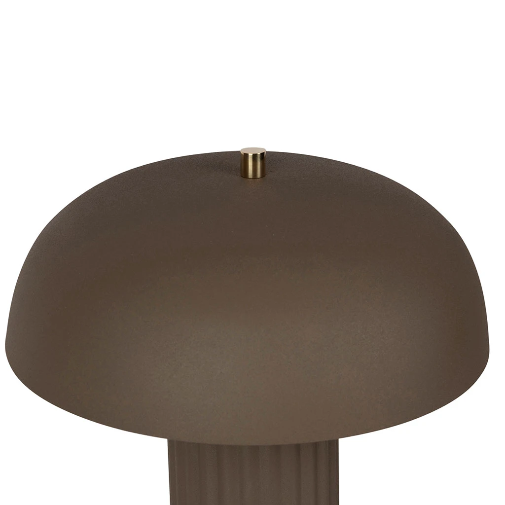 La lampe champignon Arty en fer taupe possède un design élégant et original, avec un pied en forme de tige courbée surmonté d’un chapeau en forme de champignon.
